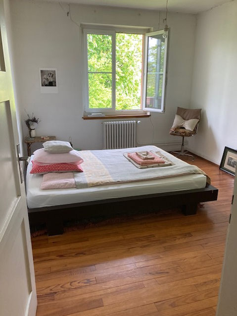 Das Haus, umgeben von einem großen wildbewachsenen Garten, befindet sich in einer ruhigen Straße im französischen Ort Hegenheim, an der Grenze zu Basel. 5 Minuten mit dem Auto, 10 Minuten mit dem Fahrrad zur Stadtmitte Basel, 15 Minuten zu Fuß zur nächsten Bushaltestelle.